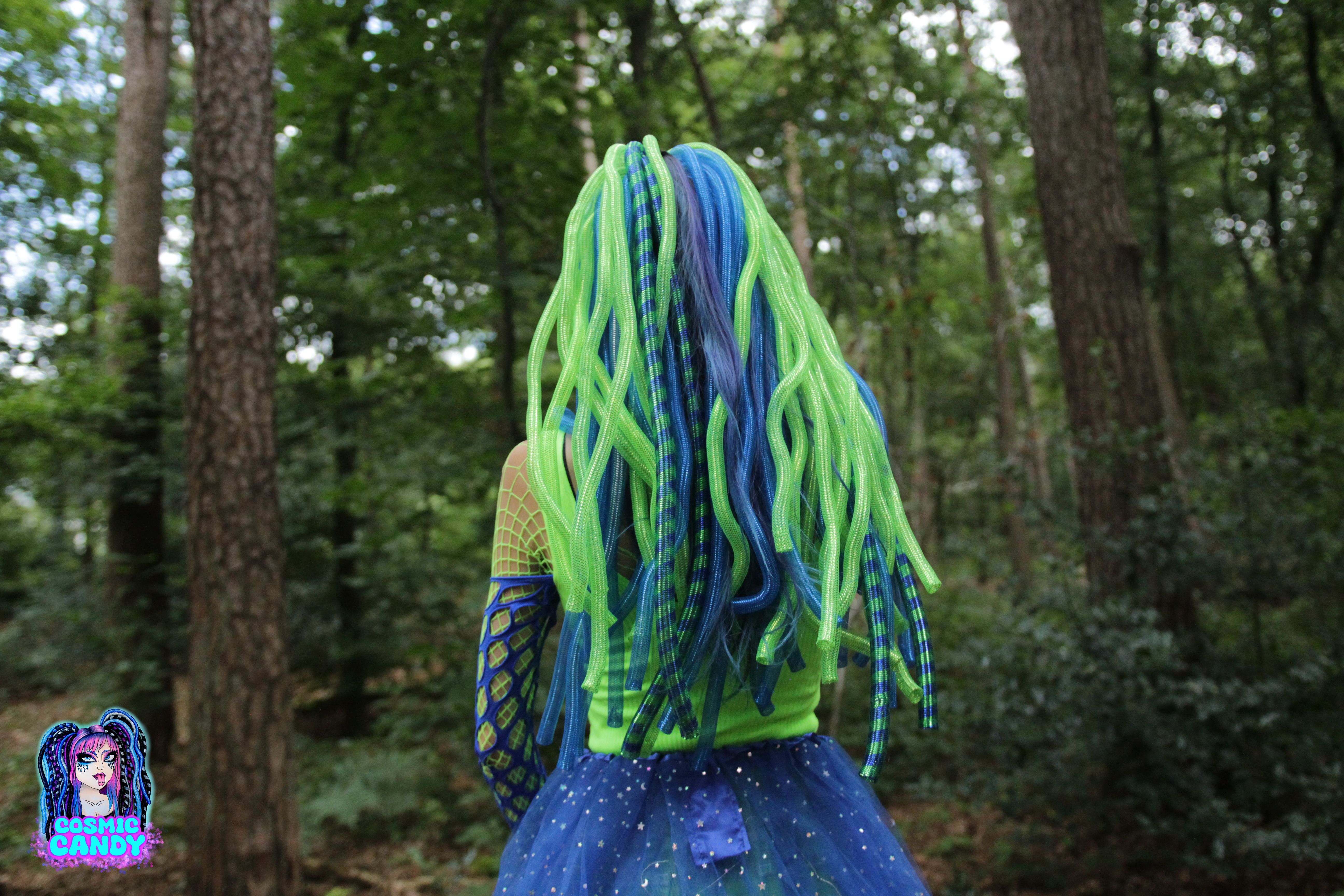 It is my mission to remind you of one of the most awesome alternative accesoires out there! I make bouncy and wiggly Cyberfalls / Cyberlox to upgrade your outfit! Originating from the Cybergothic Scene, a hair accessory that you can use anytime! Everyday use, for events and fairs, parties, you name it! You just gotta let your imagination flow :)