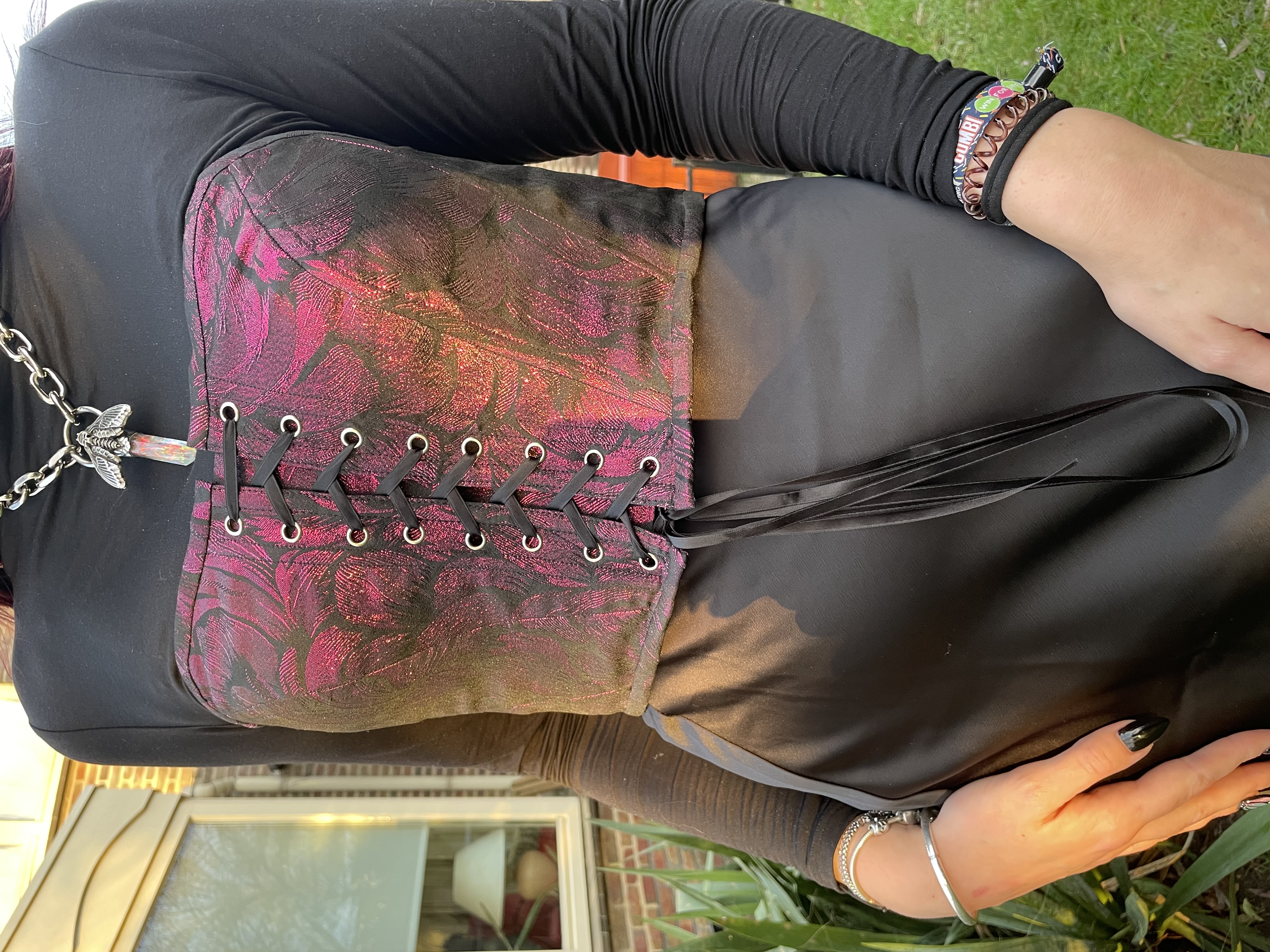 I’m a sucker for mesh, lace, corset vibe tops and basically everything witchy. I’m a social worker in ‘real life’, so during the week I focus on work appropriate fashion without losing my alternative touch.
